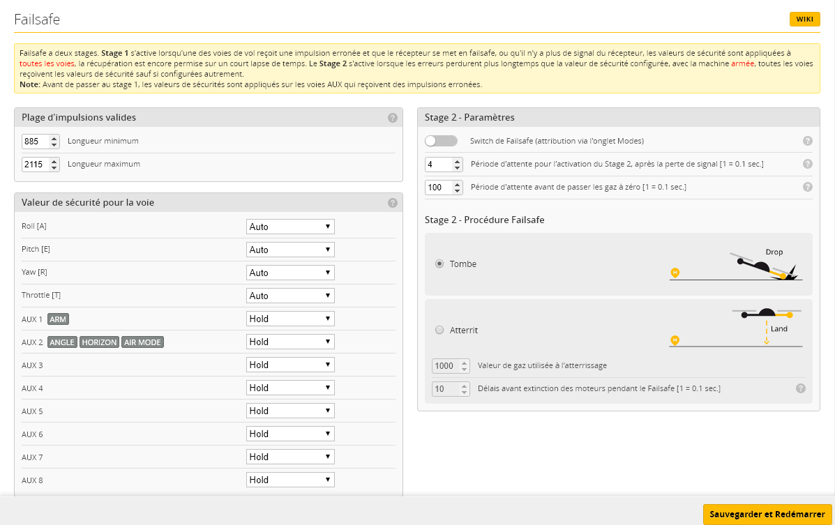 pascm 0 Posté(e) 2 avril 2018 Bonjour à tous, Nouveau avec les quads je suis en train d'essayer de faire décoller un X220. Avant toute chose je précise que niveau betaflight j'ai fais tous les réglages qu'on trouve sur youtube : dans receiver les courses sont bien de 1000 à 2000, le firmware est le dernier dispo, les modes sont affectés aux sticks correctement et le gyro a été étalonné. Ma batterie est chargée et vérifiée au voltmètre et les hélices sont dans le bon sens. Le centre de gravité est sur le centre de symétrie. Le problème est le suivant : En mode Angle, j'arme, je mets les gaz et il n'est pas stable du tout pour quitter le sol. Si je mets les gaz doucement une hélice touchera le sol avant qu'il ne décolle complètement. Si je mets les gaz à fond directement il décolle violemment avec une trajectoire tout sauf verticale et tout à coup il se crashe Quelqu'un a déjà eu ce problème ? Par avance merci pour votre aide. Partager ce message Lien à poster Partager sur d’autres sites