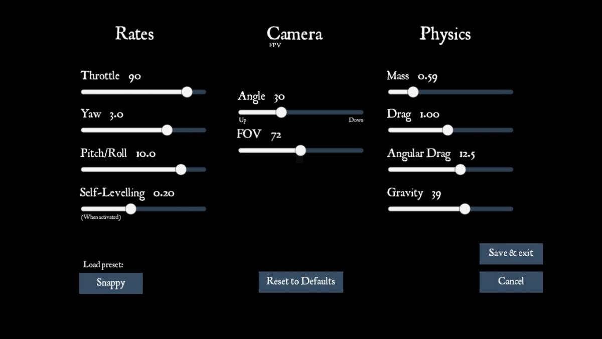 Je viens tout récemment de me mettre à FreeRider vu le temps exécrable en ce moment. Les réglages de bases sont vraiment pas top et réalistes à mon goût et je ne crois pas avoir vu de messages sur les réglages des membres. Donc j'ai regardé un peu les config proposées sur internet et celle qui me semble le mieux est celle ci :